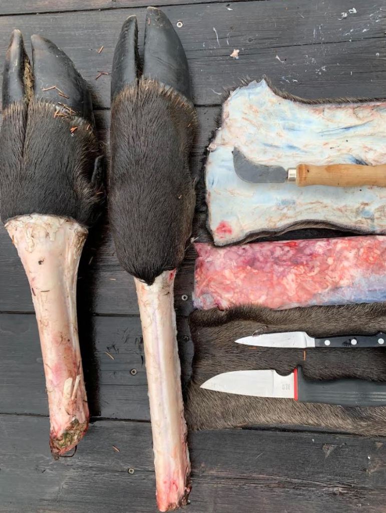 The moose foreleg in the attached pictures was legally harvested in a hunt and this raw material would normally be left in the field as waste after dressing out the animal; I choose to harvest and process this raw material into a beautiful hand-crafted product.