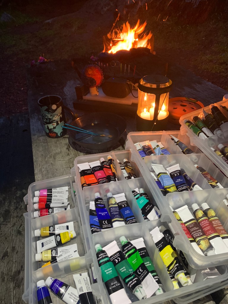 I often travel to remote areas of wilderness with my camper, packraft and hiking boots. I bring all my artist supplies to fully immerse myself into the process of creating.